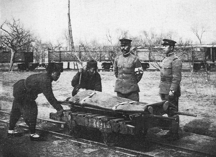 軽便鉄道は、戦傷者の移送にも利用された。ここでも軽便車両