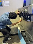 ソフトクリームの入れ方のコツを教わり、上手にソフトクリームを入れようと頑張りました。