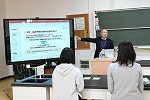カケンテストセンターの佐々木孝様をお迎えし、繊維に関わる専門的なお話とキャリア講演をしていただきました。繊維の検査が私たちの生活と深く関わっていることを、具体例を挙げ、お話いただきました。また、進路選択に当たっては、ご自身の経験をもとに「自分の強みを生かす」ことの大切さを教えていただきました。
