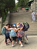 いよいよ世界遺産「泰山」に8人揃って登ります!円陣を組んで気合い充分。一歩一歩踏みしめて歴史を感じるとともに、絆を深めたいと思います。