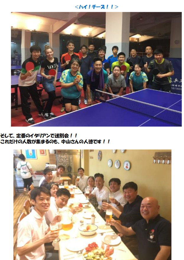 昨年(2018 年)の 1 月に送別卓球大会(通称カッパ杯)でお別れした 瀧川 篤司 さんが、日本か