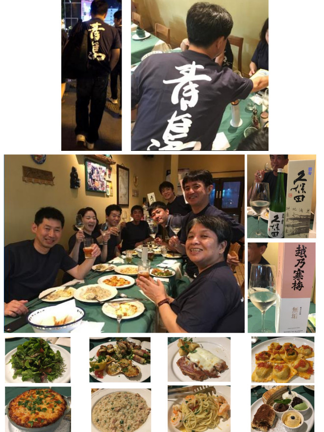 その後は、いつも通り、充実のアフター♪♪ 全員青島 T シャツ(☚「青島」の漢字をよく見るとひらがなで「すてきなところ」と文字っている素敵な T シャツです)に着替えて、イタリアン♪ 美味なる無限大!!