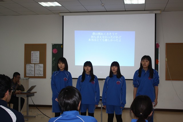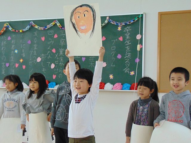 卒業生は小学部門出の言葉の最後に「旅立ちの日に」を合唱し、それぞれが今日までの日々を思い起こしながら気持ちをこめて歌いました。