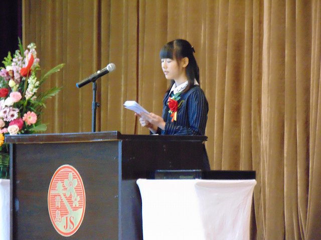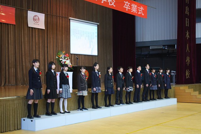 校長先生から卒業証書を手渡された卒業生は、堂々とした振る舞いで本当に立派でした。中学部卒業生代表の答辞では、「ここ中国で学んだ経験を活かして、世界の懸け橋となれる人になりたい。また、先生方や後輩の支え、親への感謝の気持ちを忘れず、最上級生として苦労もあったけど、これまで乗り越えてきた経験を自信にかえて、自分の可能性を見つけるために頑張っていきます」という、力強い決意の言葉がありました。