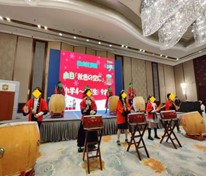 例年同様、青島日本人学校の生徒さんによる勇壮かつ爽やかな和太鼓演奏でクリスマス会は始まりました。そのあと、野田日本人会会長の開催挨拶と斎藤総領事の乾杯の音頭で、楽しいお食事タイムとなりました。