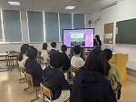 まず初めに、小林先生から、中学生に向けてキャリア講演がありました。語学を学びながら、青島以外の都市で働いていた小林先生の姿を知り、小林先生の決断力や行動力に子供たちは刺激を受けました。