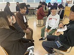 キャリア講演のあと、学生のみなさんと交流会を行いました。今まで行ってきた現地校の交流会とは違い、青島在住の日本人の学生との交流会でした。これまで中学部では、「コミュニケーション能力向上」のための活動を行ってきました。交流会は、その中で学んだことを実践する場として、自分の考えや意見を相手に分かりやすく伝える経験を積むことを目的の一つとしました。